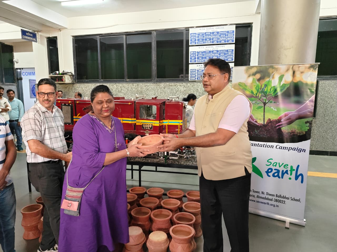 कार्यक्रम में सीनियर डीपीओ ने भी मिट्टी के जलकुंड वितरित किया. ADRM श्रीमती मंजू मीणा, ADRM विकास गढ़वाल, सीनियर डीईएन, सीनियर डीएसटी, सीनियर डीएमएम, सीनियर पीआरओ समेत डीआरएम ऑफिस के अन्य अधिकारी और रेल कर्मचारियों ने इसमें  सहभागिता निभायी.