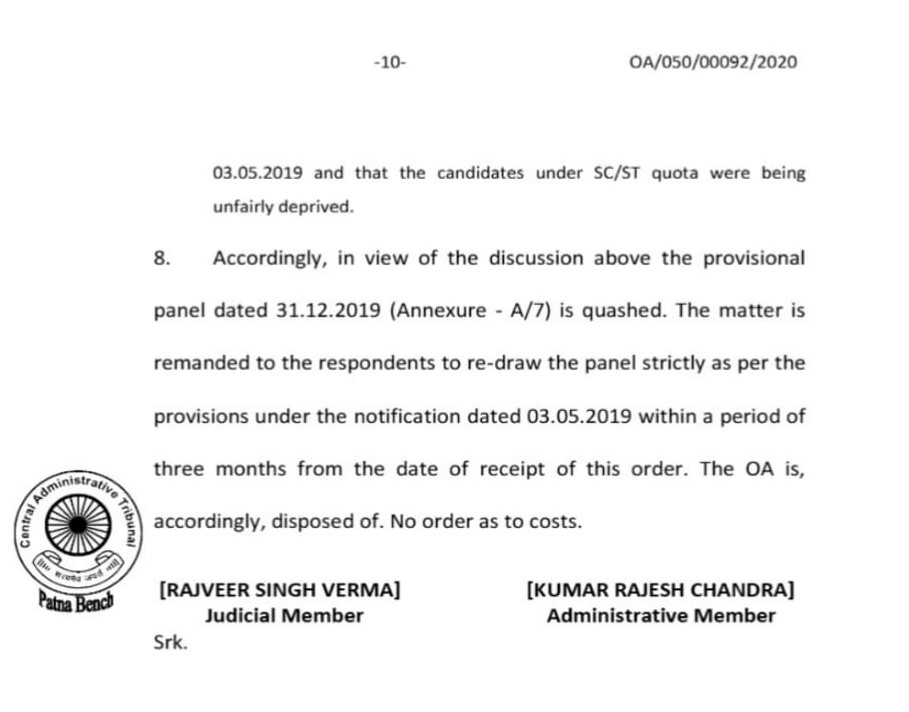 • पटना कैट ने पदोन्नति पैनेल रद्द कर तीन माह में नया पैनेल बनाने का दिया आदेश, नहीं हुआ अनुपालन
